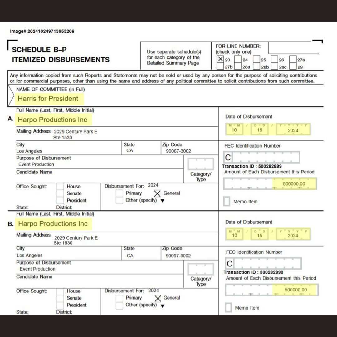 Why is Oprah lying about being paid $1 million from the campaign of Kamala Harris? Oprah told TMZ that she was never paid by the Harris campaign. “I was paid nothing, ever. Except we have the receipts to show that Oprah was indeed paid two payments of $500,000 by the Harris campaign.